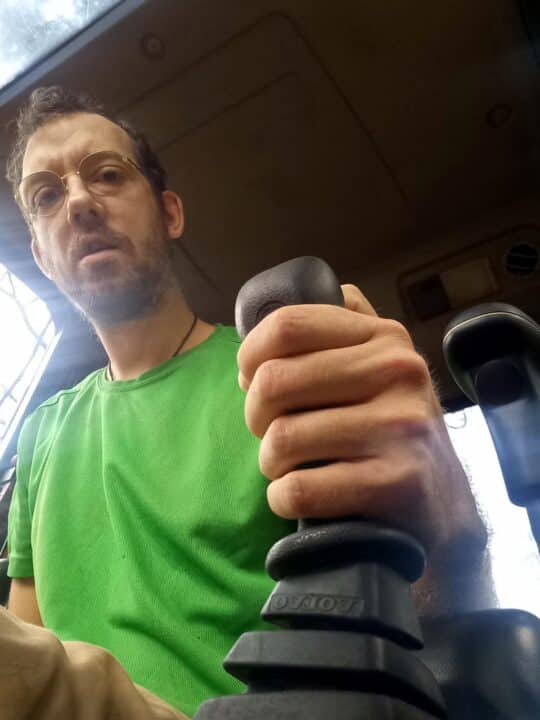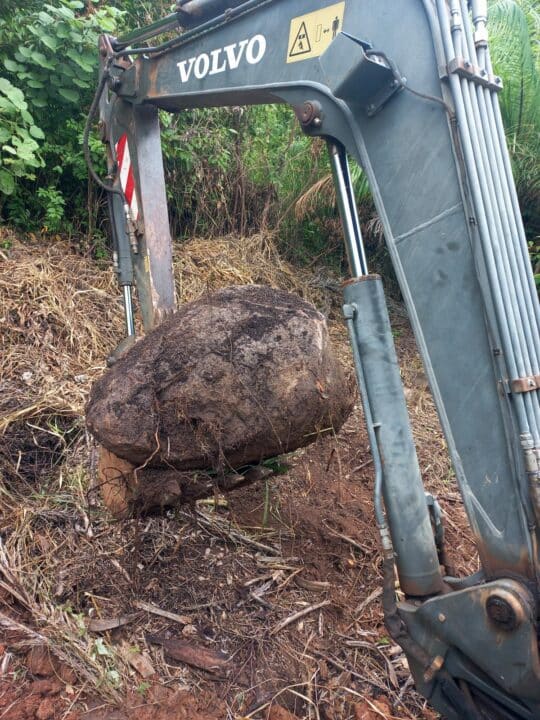 So konnte ich mit einigen Fingerbewegungen spielend leicht Löcher graben oder große Steine bewegen. Die Klimaanlage funktionierte zwar nicht, doch komfortabel war das mit offener Tür trotzdem noch. Wie man einen Bagger bedient habe ich übrigens nirgends gelernt, doch es war recht schnell ersichtlich welcher Joystick welches Teil bewegt.