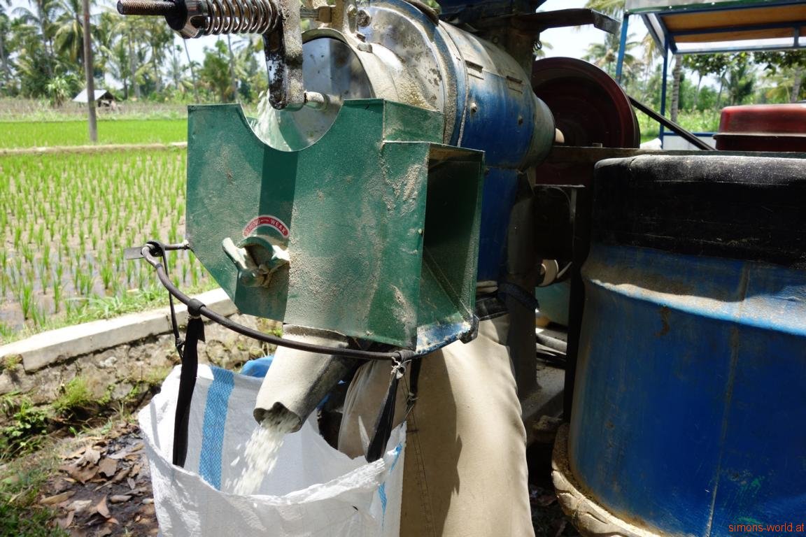 Gegenüber der Einfahrt zum Hakiki Inn verarbeiteten einige lokale Bauern mit einer Maschine einen Sack voller frisch geerntetem Reis. Plötzlich fingen die Hunde an zu bellen und liefen wie wild durch die Gegend. Es stellte sich gleich heraus warum: ein Pärchen schwarzer Affen hatte sich bis auf die Dächer der Hüttchen vorgewagt. Ein Foto später waren sie aber bereits wieder verschwunden. Zeit für das Mittagessen, diesmal etwas Vegetarisches. Die Gemüsesuppe hier ist echt empfehlenswert. Nur mit den Chilis sollte man aufpassen, da blieb mir kurz mal die Luft weg.
