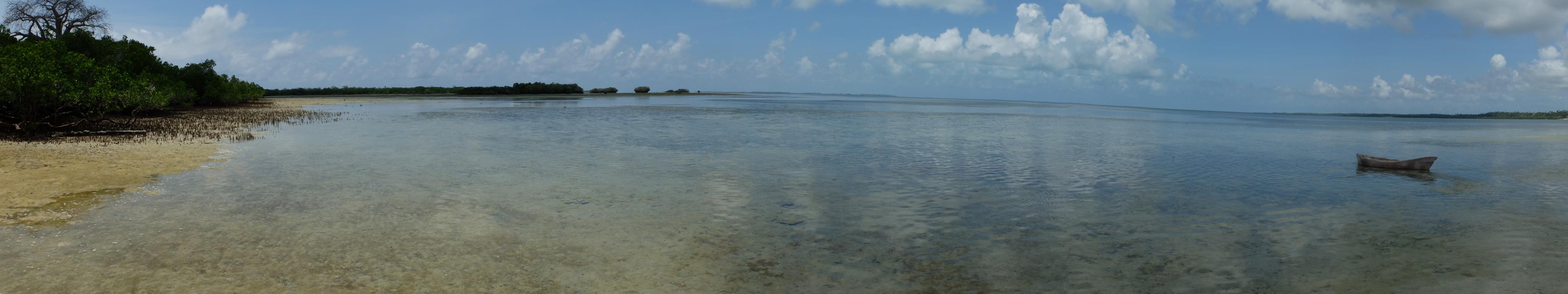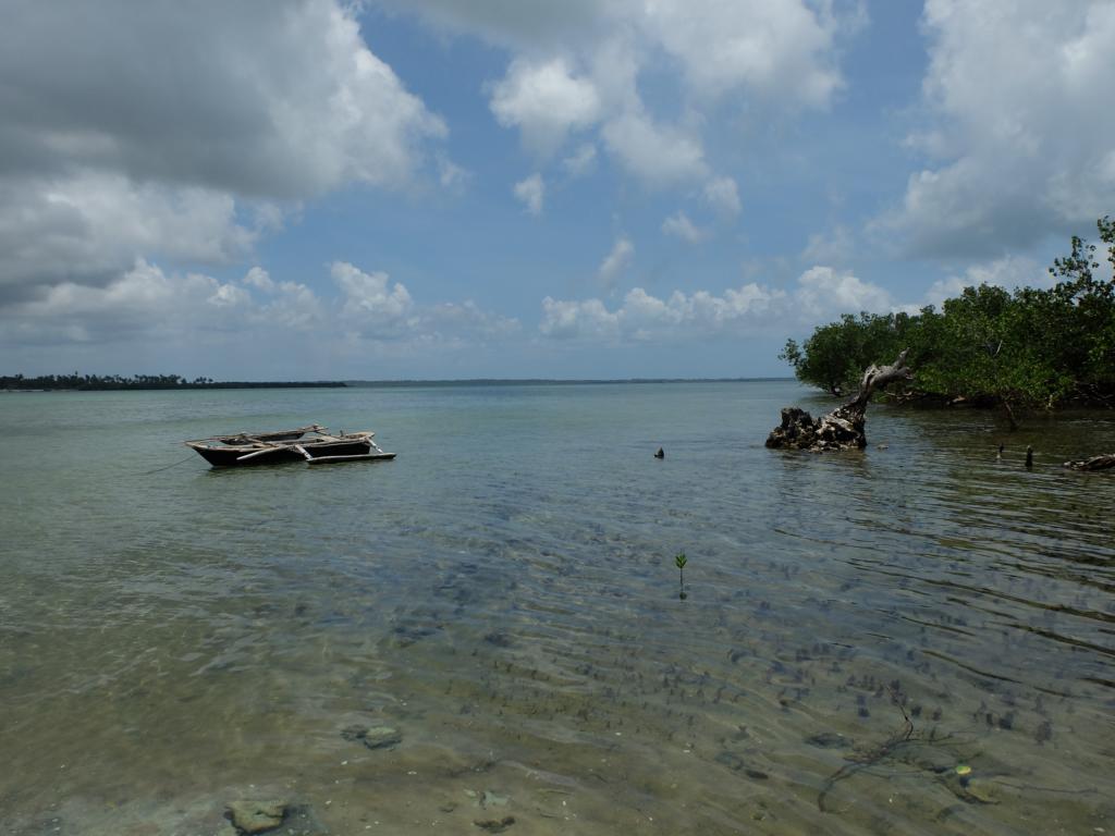 Gegen Mittag, als die Flut langsam ihren Höhepunkt erreichte, sprang ich zusammen mit Imani auf das Boot und wir machten uns auf den Weg um die Nachbarinsel Juani Island zu erkunden. Unser erstes Ziel war die Blue Lagoon. Ein Kanal der den offenen Ozean mit der Bucht von Chole verbindet und nur für wenige Stunden am Tag – eben bei Flut – mit dem Boot befahrbar ist. Am Ende des Kanals befand sich ein großer, natürlicher Swimming Pool.
