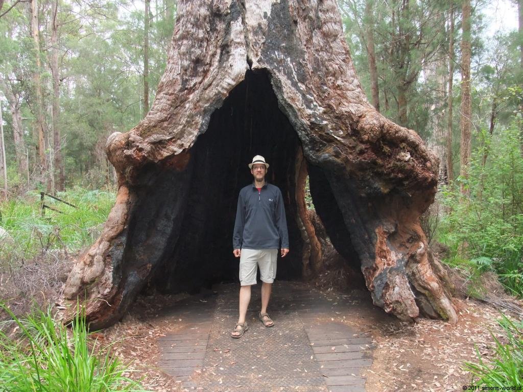Unser Ziel war der Valley of the Giants Tree Top Walk. Die Bäume waren wirklich riesig, und ein paar davon auch geschwollen oder halb ausgehöhlt. Ist schon ein merkwürdiges Gefühl wenn man in so einem ausgehöhlten Baum steht 🙂 Das laufen auf den Plattformen kannten wir ja schon vom Otway Tree Top Walk, doch der hier war noch mal ein ganzes Stück höher.