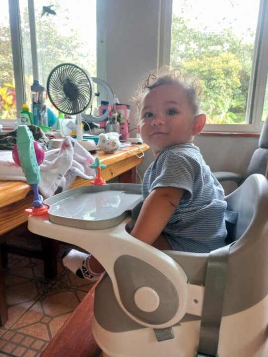 Kurioserweise will er aber so überhaupt nicht seine Großeltern in deren Haus unweit von Santiago besuchen. Dort schreit er pausenlos wie am Spieß, obwohl sie doch überhaupt keine kleinen Kinder essen. Vielleicht ist es ihm zu heiß oder die Umgebung zu unbekannt? So wirklich wissen wir nicht woran es liegt, also sind die Besuche und Übernachtungen bei Opa und Oma vorerst ausgesetzt.