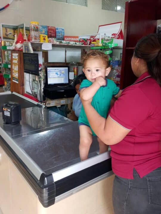 Wenn wir in die Cooperativa kommen, bleibt er oft an der Kasse bei der Verkäuferin und beobachtet wer alles rein- und rausgeht, während Yuly und ich in Ruhe einkaufen. Doch auch im Baumarkt, im Agrarshop und auf den verschiedenen Märkten ist er gerne unterwegs. Hauptsache es bewegt sich was und klein Simon ist glücklich.