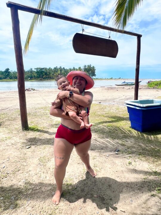 Autofahren gefällt ihm aber und so wagten wir auch schon mehrmals den Weg in die andere Richtung, nämlich an den Strand von Calovebora. Der ist ja in der Tat sogar näher als der Supermarkt in Santiago. Es war bereits zu Yulys Geburtstag im Juli, als Simon das erste Mal salzigen Sand zwischen den Zehen hatte.