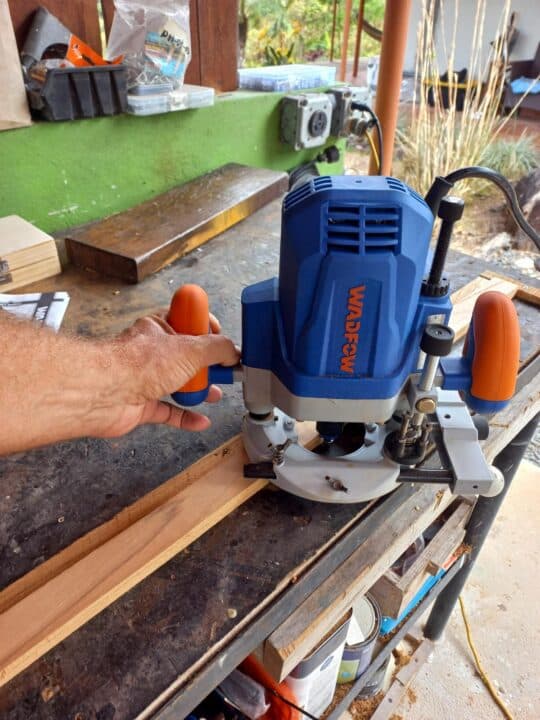 Auch die Qualität der Schnitte war nicht ideal, die Bretter sind oft gewellt oder verzogen. In diesem Fall war das aber nicht so wild, da ich sowieso jede Menge kleiner Stücke daraus sägte. Diese kamen dann durch die Hobelmaschine, um sie glatt und exakt identisch zu machen. Im nächsten Schritt kam die Oberfräse, womit ich erstmal die vier länglichen Kanten abrundete.