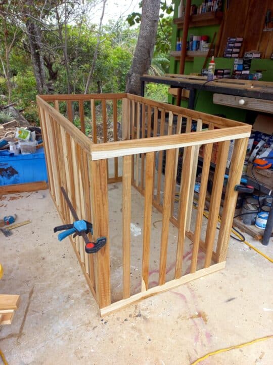 Noch ein paar Stücke Acrylglas zurechtgeschnitten und fertig waren die selbstgemachten Bilderrahmen für die selbstgemalten Bilder meines Opas. Hätte er wohl nie im Leben gedacht, dass einige davon mal in Panama hängen würden. Ja und ich hätte bis vor ein paar Jahren wohl auch nie gedacht, einmal ein Gitterbett für mein eigenes Kind zu bauen.