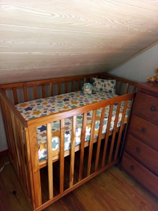 Da ist es einfacher ihn direkt bei uns im Bett zu haben, anstatt zehnmal die Nacht aufzustehen und ihn aus seinem Gitterbett zu holen. Nur wird er immer größer und der Platz immer weniger. Wir haben also kürzlich eine Seite des Gitterbettes entfernt und es an unser Bett geschoben. So entstand ein sicherer und gleichzeitig getrennter Schlafraum für klein Simon. Und wir haben wieder etwas mehr Platz bei uns im Bett.