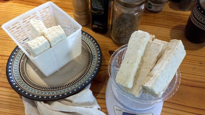 Schließlich konnte ich ein Nahrungsergänzungsmittel finden, welches nur diese eine Bakterienspezies enthält und noch dazu in Pulverform in praktischen Kapseln verkauft wird. Damit versuchte ich dann ein etwas angepasstes Rezept für Feta Käse. Dreh- und Angelpunkt war auch hier der Reifeprozess, der bei echtem Feta in mehreren Stufen abläuft und mindestens zwei Monate dauert.