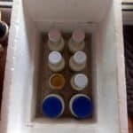 Die Reifung an der Luft wäre in unserem Klima allerdings wohl kaum möglich. So probierte ich als nächstes eine Art Feta. Der enthält neben den üblichen mesophilen Bakterien und Schutzkulturen zum Großteil eine bestimmte Unterart Lactiplantibacillus, welche ihm seinen typischen Geschmack verleiht. Abgesehen vom professionellen Molkereibedarf, wo die Kulturen bei -18°C transportiert und gelagert werden müssen, war es allerdings schwierig zu beschaffen.