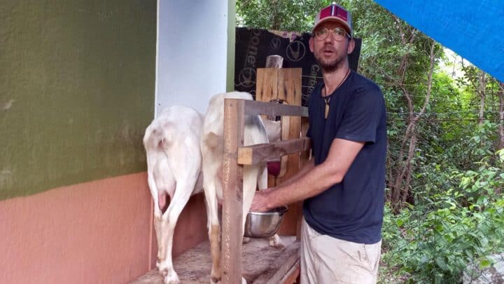 Und die begann in der Regel um 6 Uhr morgens mit dem Melken. Klein Simon fungierte dabei oft als Wecker. Vielleicht nicht ganz uneigennützig, schließlich bekam er direkt eine Portion frische Ziegenmilch zum Frühstück. Roh und ungekocht, direkt aus der Zitze. Die rund 2,5 Liter Milch, welche die beiden Ziegen zusammen täglich produzierten, konnte er aber freilich nicht alleine trinken.