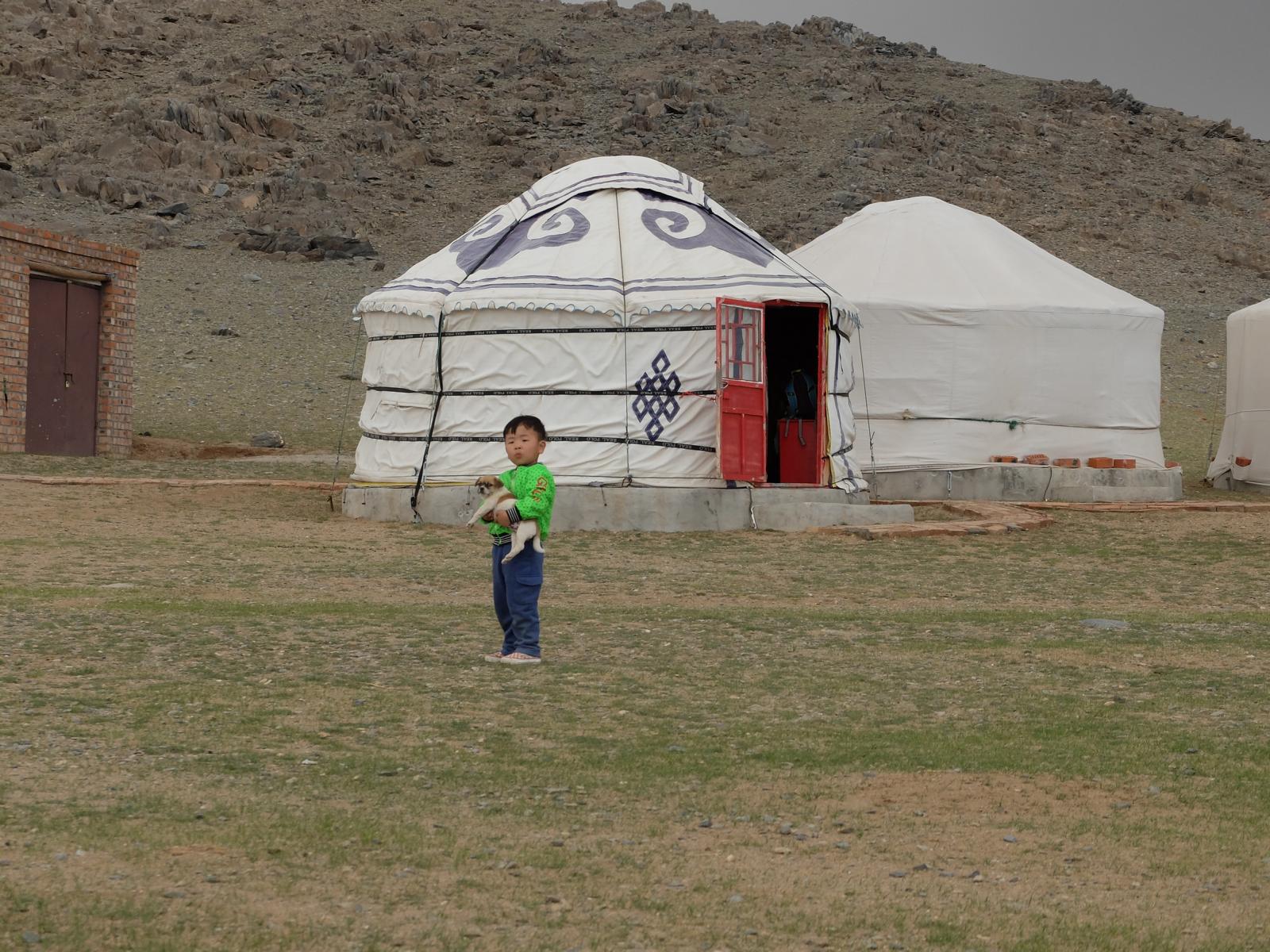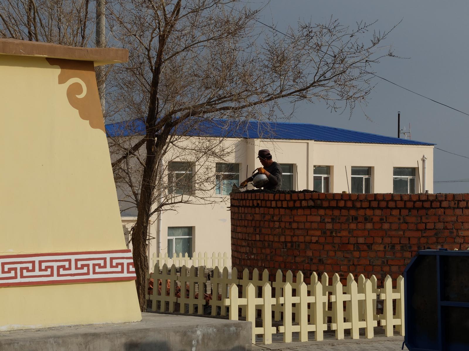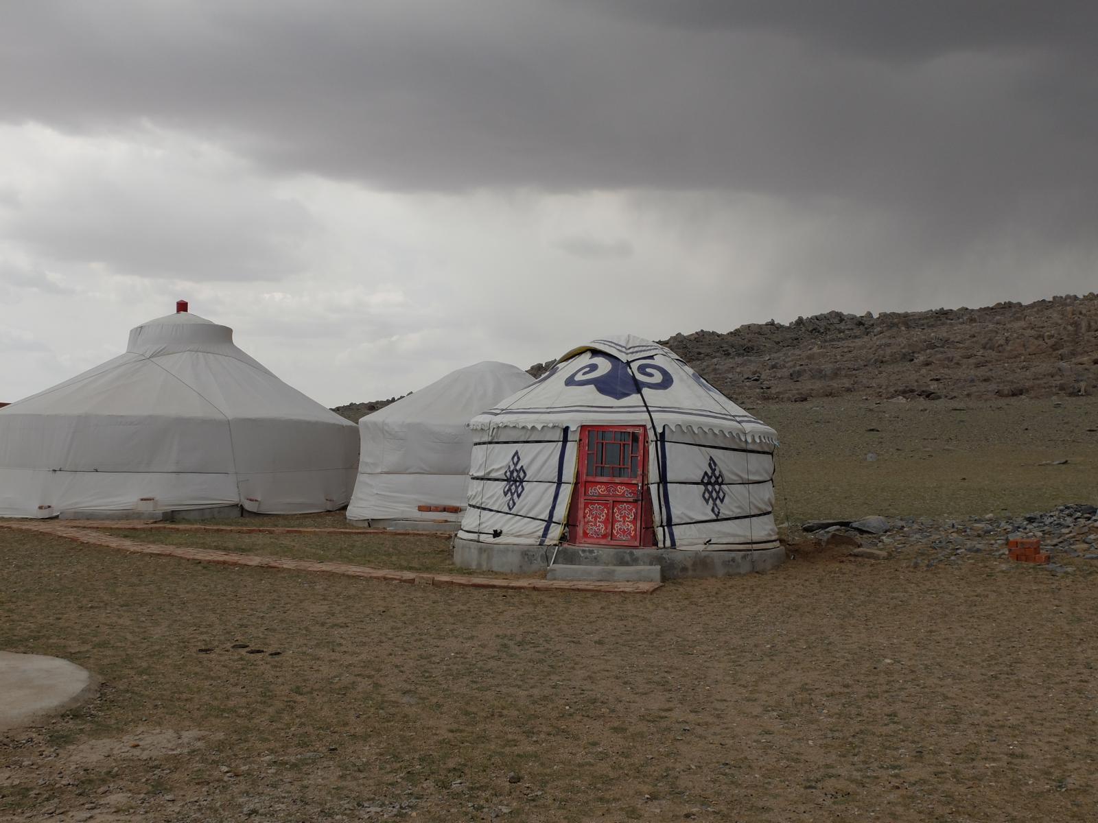 So ganz traditionell sieht es ehrlich gesagt nicht aus, denn die Jurten haben Beton Fundamente und sogar Strom. Ein richtiges Klo und fließend Wasser gibt es dagegen nicht. Die ehemaligen Nomaden haben sich hier mittlerweile an feste Siedlungen gewöhnt. Wie ich erfahren habe geschah das auf Wunsch der chinesischen Zentralregierung. Die Menschen bekamen Land zugeteilt und außerdem einen Haufen Geld, um sich entsprechend einzurichten.